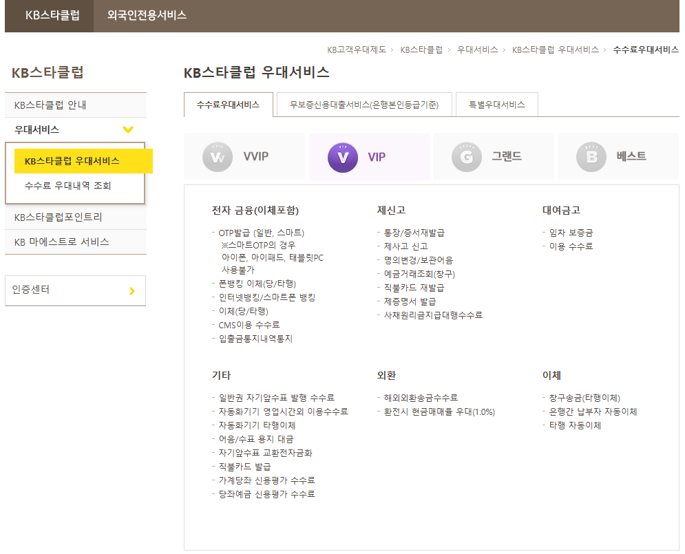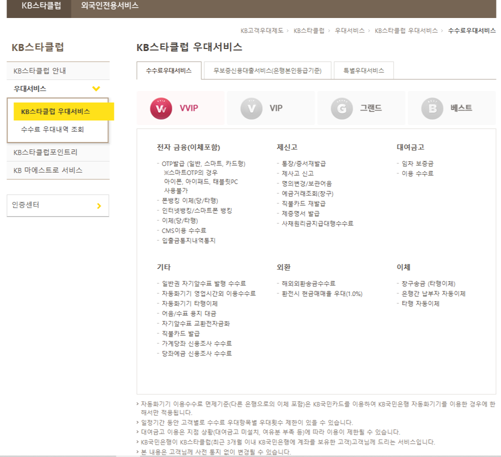 본인의 KB국민은행 등급에 따라 각종 수수료 우대서비스와 특별우대서비스 혜택까지 챙겨보시는건 어떨까요?