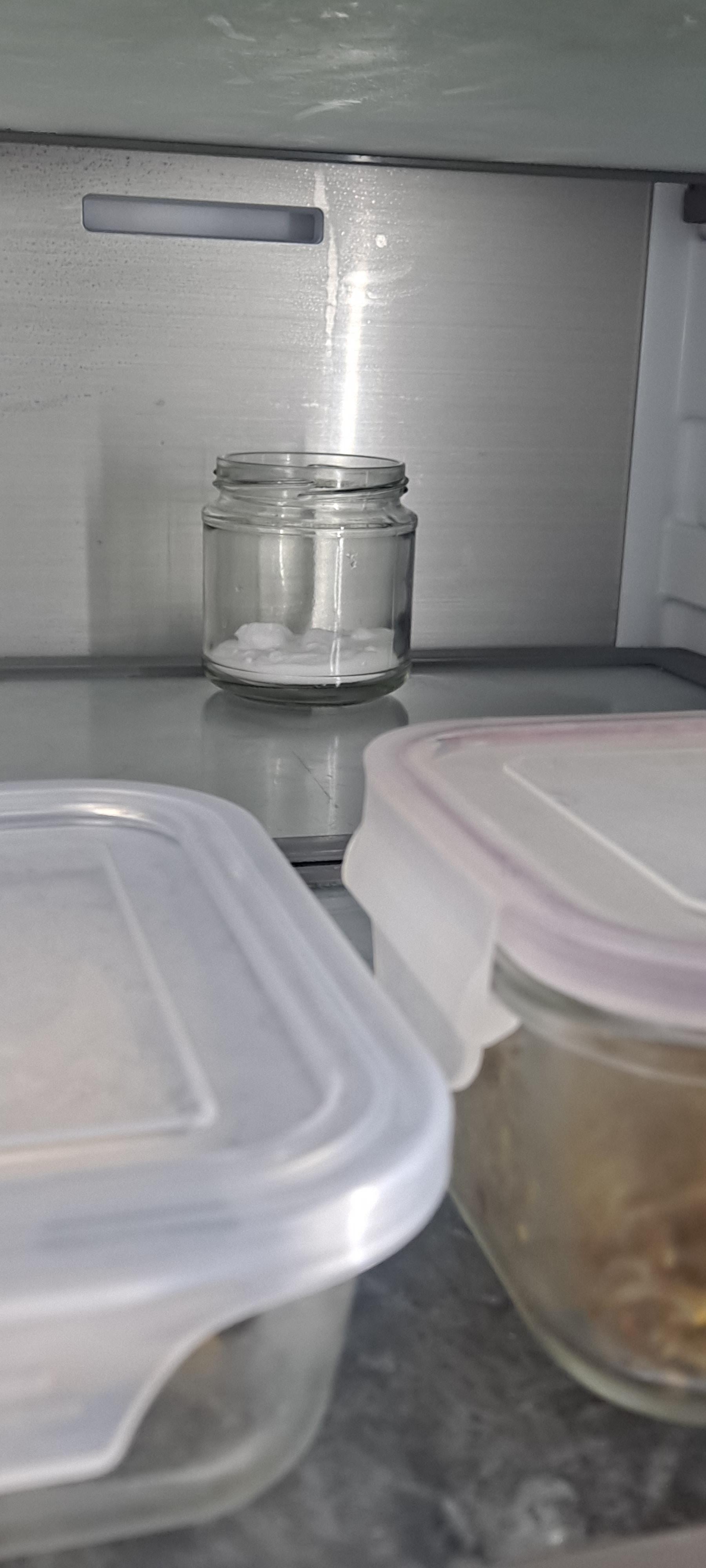 작은 유리병이나 종이컵에 베이킹소다 3~4스푼을 넣고 뚜껑 없이 냉장고 구석에 두면, 음식 냄새나 곰팡이 냄새를 흡착해 줍니다.
