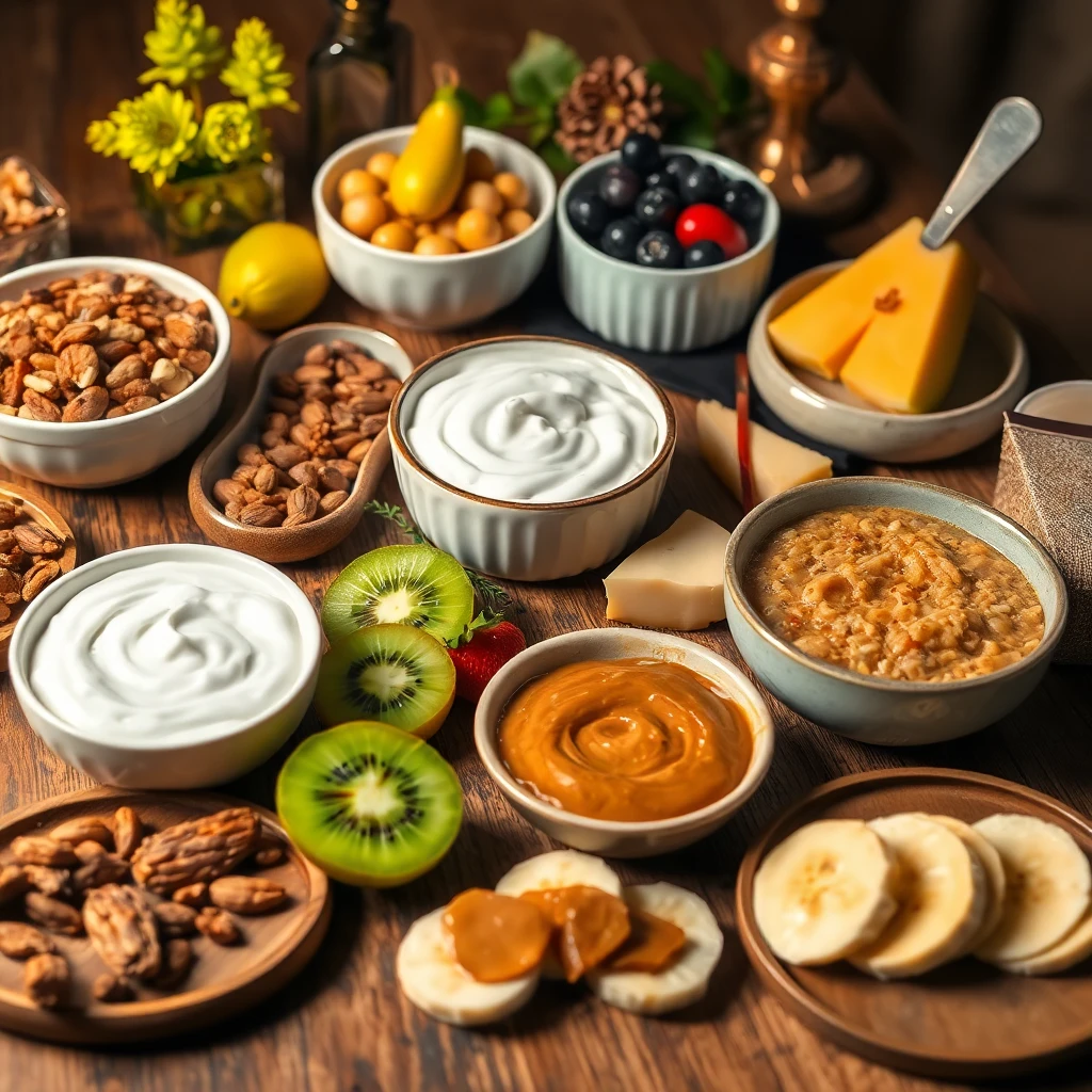 견과류와 그릭 요거트는 단백질과 건강한 지방이 풍부하여 야식으로 적합합니다.
