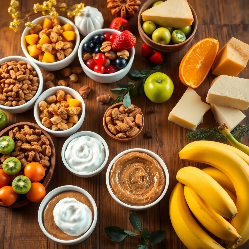 견과류와 그릭 요거트, 과일과 치즈, 키위, 호박죽, 아몬드 버터와 바나나 등은 모두 건강에 좋은 선택입니다.