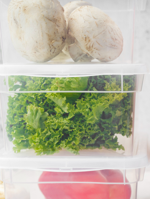 통풍이 잘되는 채소 보관용기를 활용하면 더 효과적입니다.