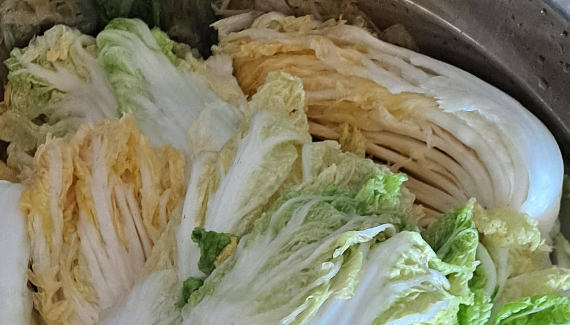 절인 알배추를 소금물에 담근 채로 밀폐 용기에 보관하면 산화를 방지할 수 있습니다.