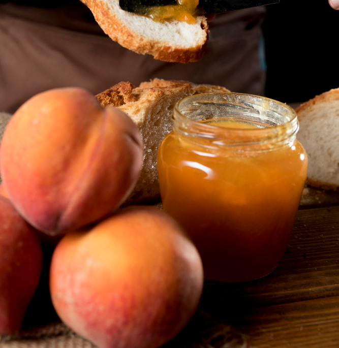 복숭아를 설탕과 레몬즙으로 졸여 잼이나 콤포트를 만들어 보관하세요.