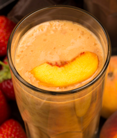 복숭아와 바나나, 우유를 함께 갈아주면 부드럽고 달콤한 스무디가 완성됩니다.