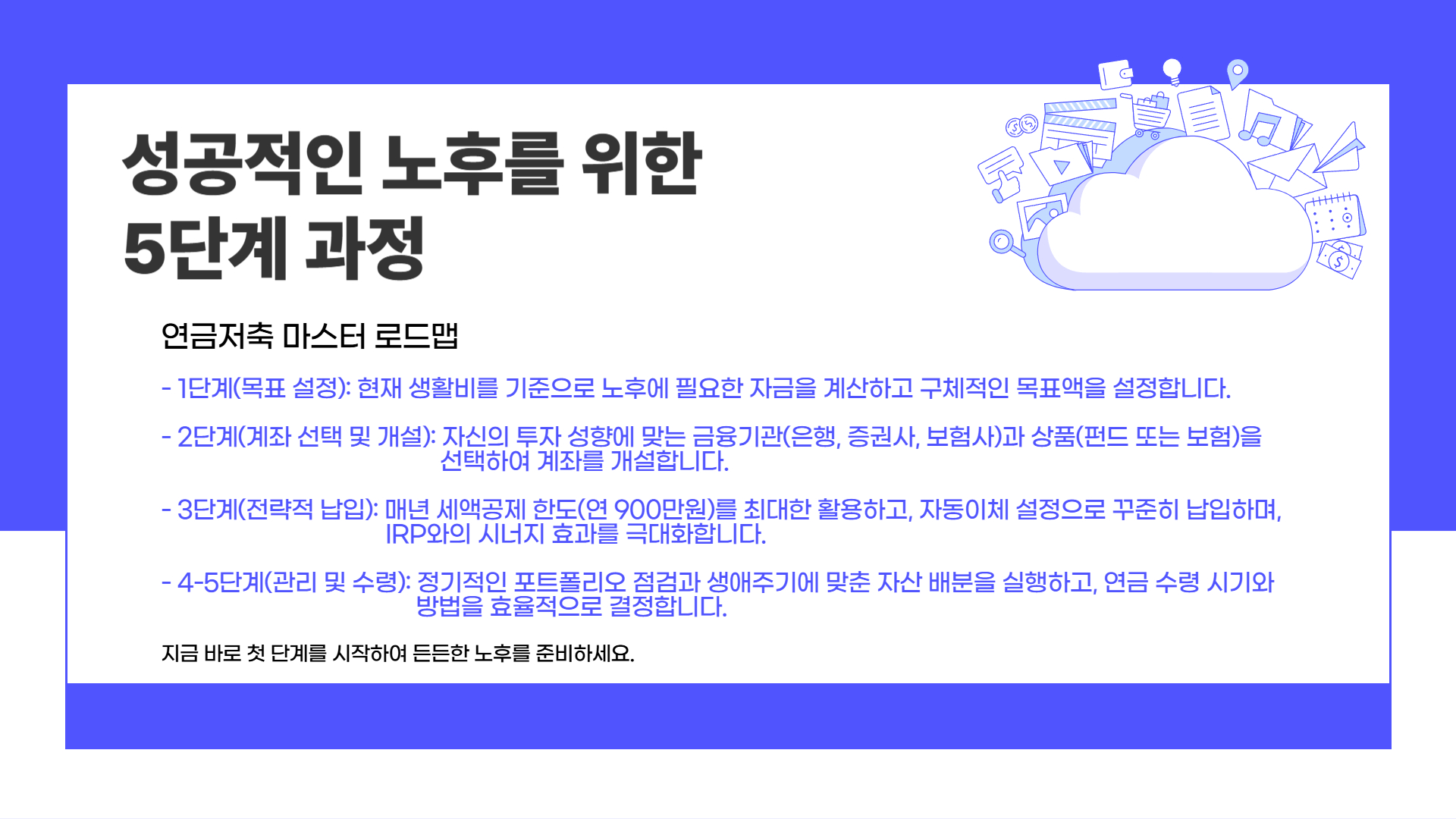 연금저축 마스터 로드맵: 성공적인 노후를 위한 5단계 과정