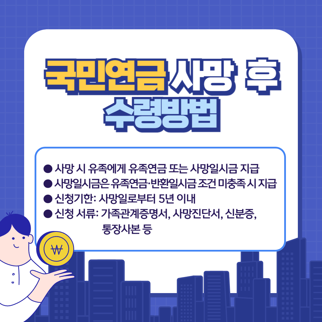 이번 글이 국민연금 사망 후 수령 방법을 이해하는 데 도움이 되었기를 바랍니다.
