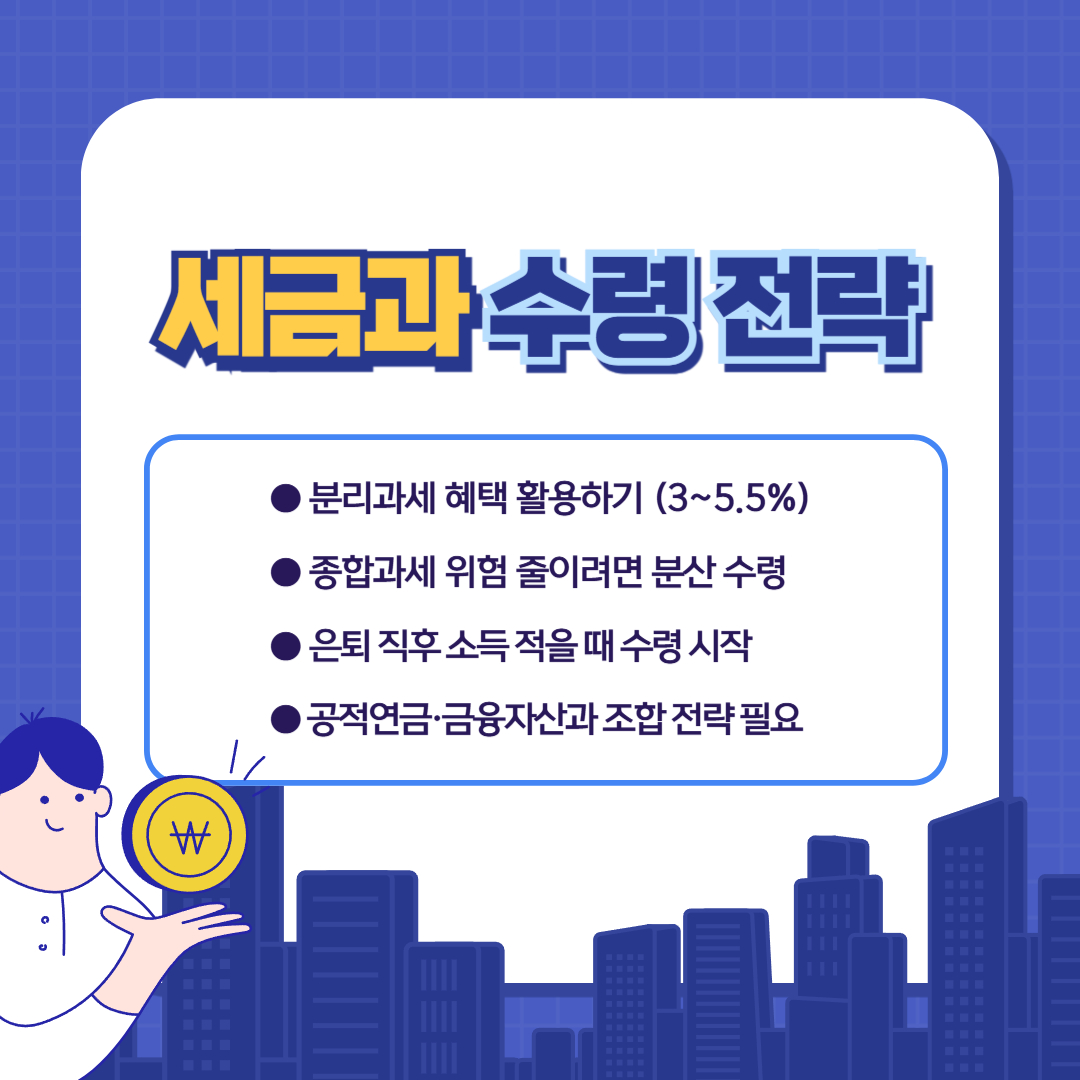 수령 방법을 어떻게 선택하느냐에 따라 세금 부담과 노후 생활 안정성이 달라집니다.