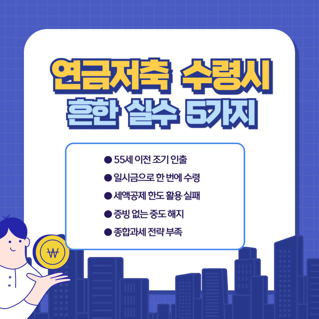 오늘은 연금저축 수령 시 가장 흔히 발생하는 실수 5가지와 이를 예방하는 방법을 정리했습니다.