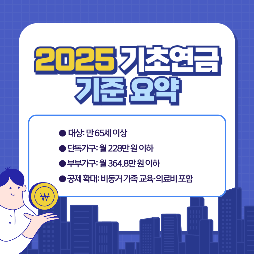 2025년 기준 기초연금 선정기준액과 수급 조건, 신청 시기, 확대된 공제 항목 등 핵심 내용을 한눈에 정리했습니다.