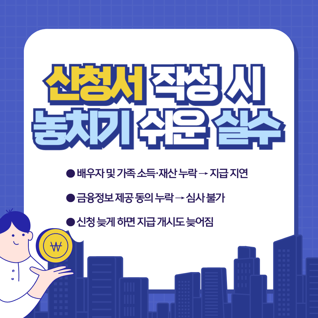하지만 신청서 작성 과정에서 작은 실수로 인해 지급이 지연되거나 탈락하는 경우가 종종 발생합니다.