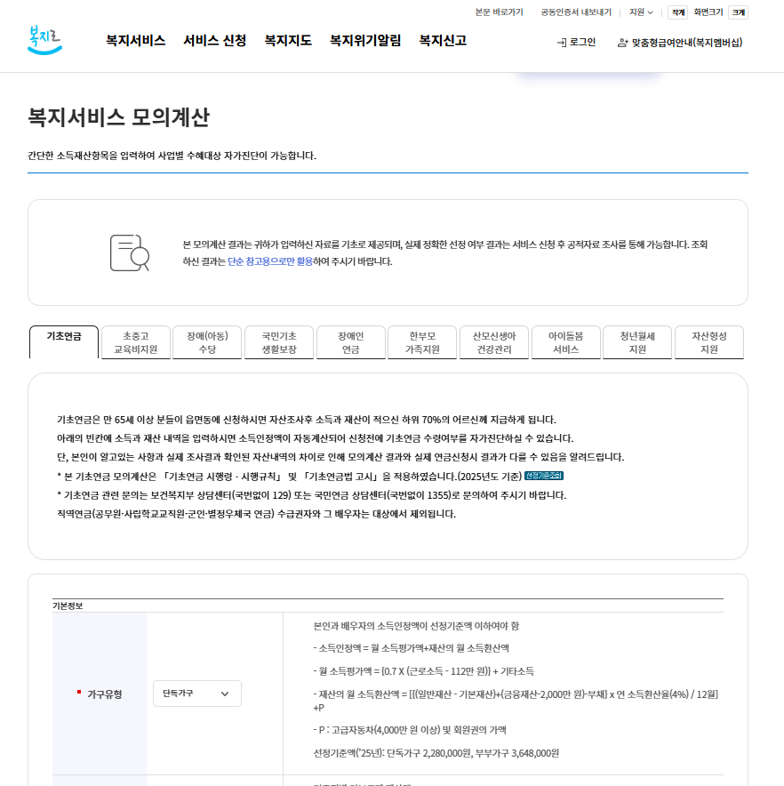 특히 복지로 사이트에서는 ‘기초연금 모의 계산’ 기능을 제공해 수급 가능성을 미리 확인할 수 있어 실질적인 도움이 됩니다.