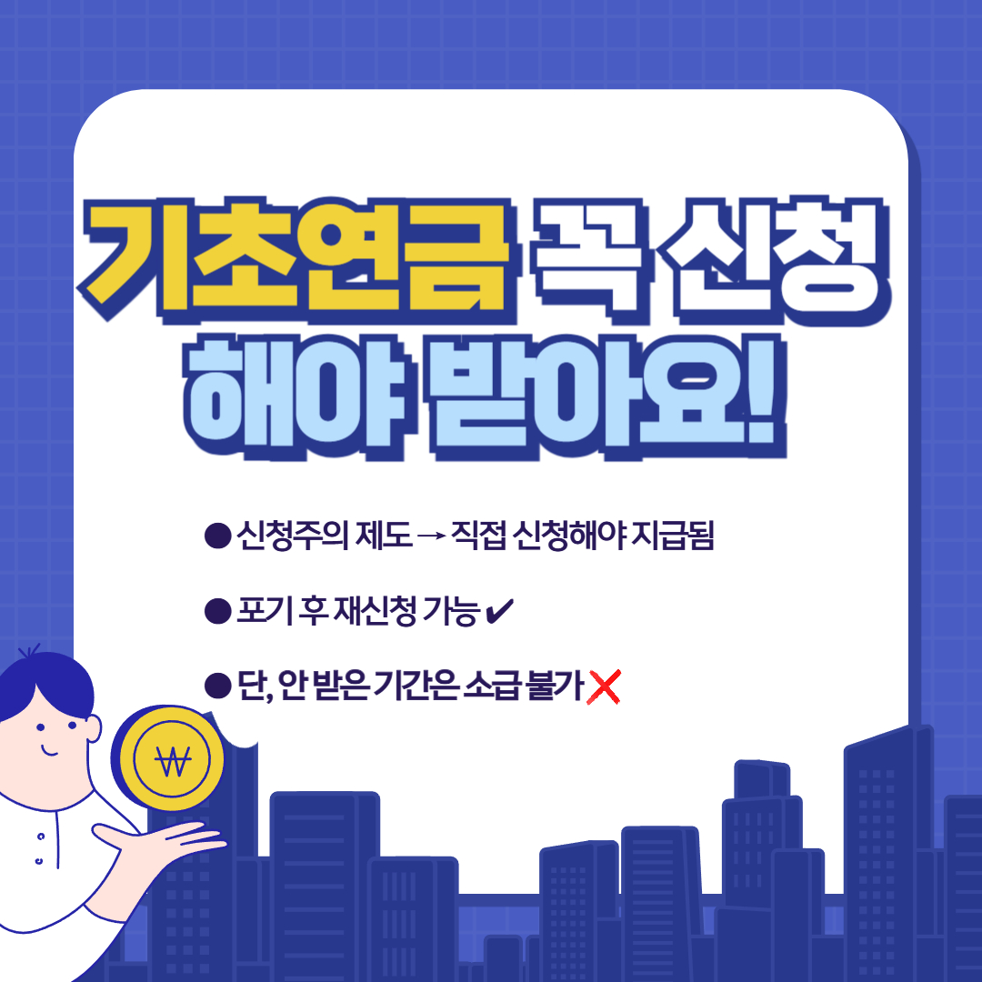 기초연금은 자동 지급이 아닌 신청주의 제도입니다.
