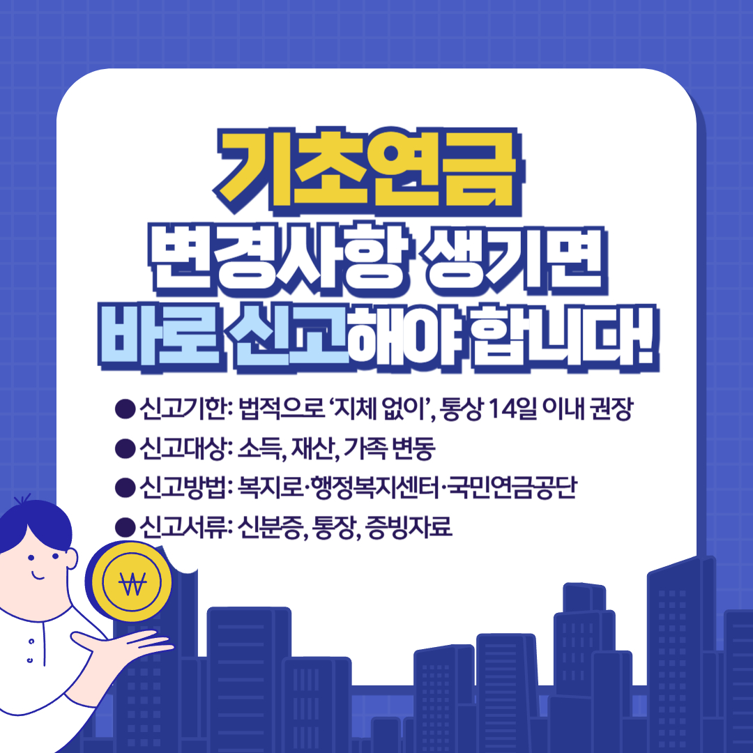 2025년 기초연금 수급자는 소득·재산·가족관계 변경 시 반드시 ‘지체 없이’ 신고해야 합니다.