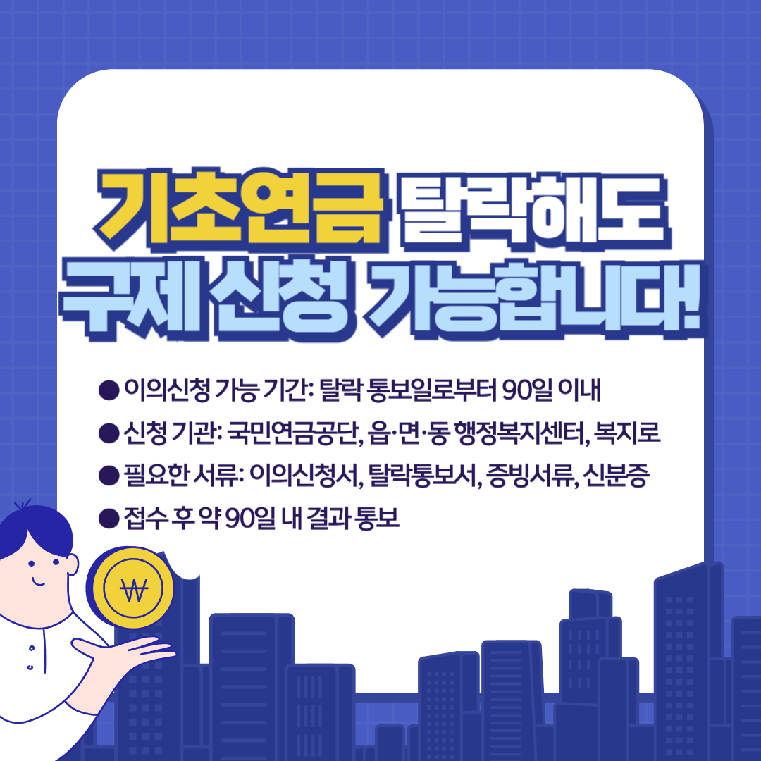 2025년 기준으로 기초연금 탈락자도 구제신청 절차를 통해 재심사 받을 수 있습니다.