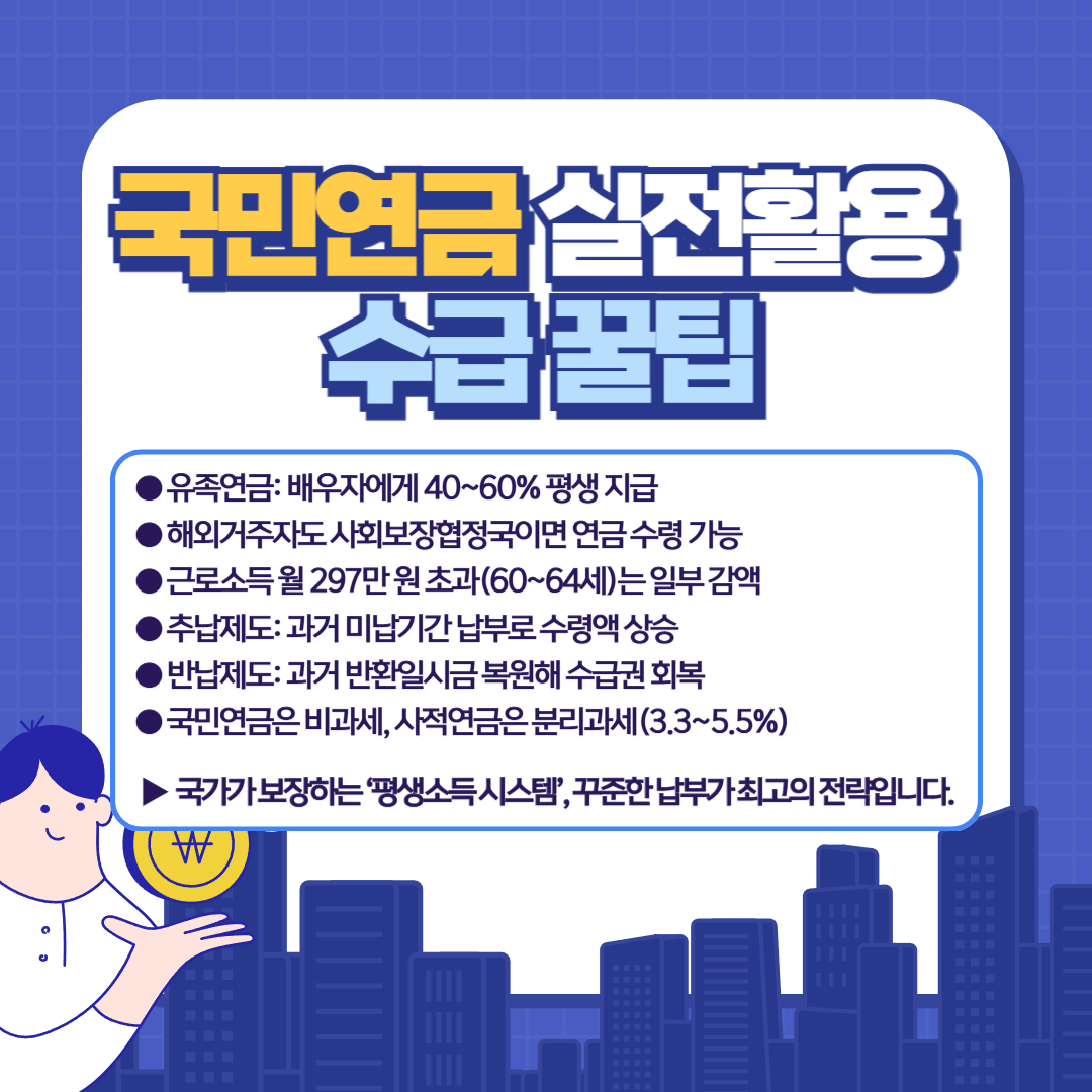 꾸준히 납부하고, 가능한 한 오래 유지하는 것이 최고의 국민연금 전략입니다.