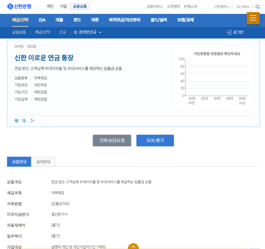 ● 혜택: 연금 입금일로부터 1년간 연 1.0% 특별금리 제공