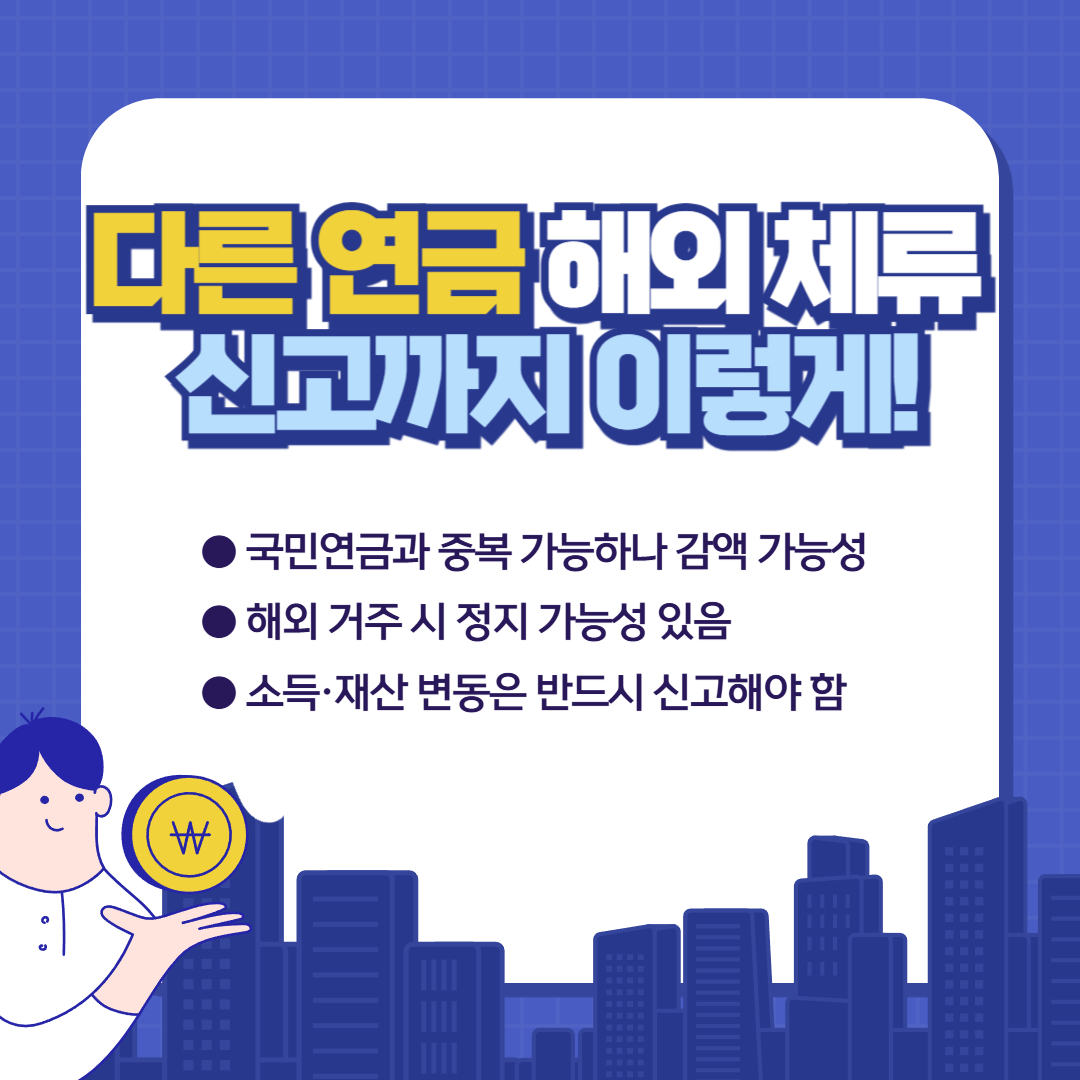 국내 거주 요건이 있으므로, 60일 이상 해외 거주 시 지급이 정지될 수 있습니다.