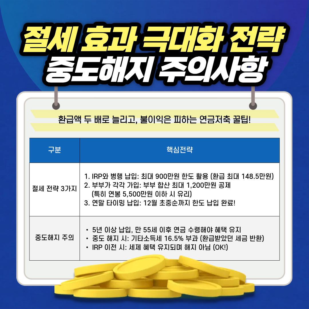 노후를 위한 준비이자, 지금 당장의 세금 절약으로 이어질 것입니다.