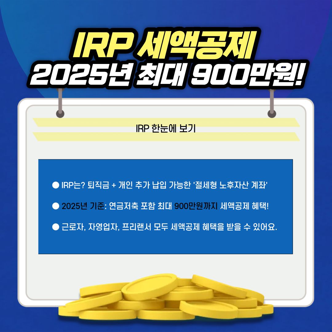 2025년 IRP 세액공제 제도는 연금저축과 결합해 최대 900만 원 한도에서 세제혜택을 주는 강력한 절세계좌입니다.