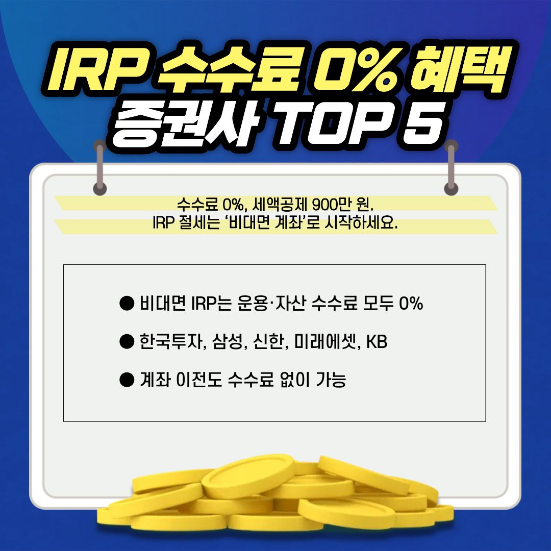 비대면 IRP 수수료 0% 증권사 TOP 5
