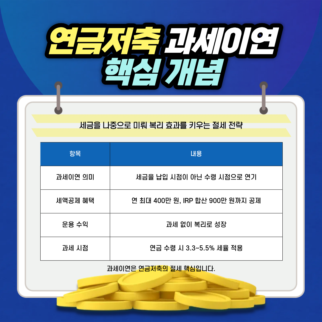연금저축의 과세이연은 단순한 세금 유예가 아니라, 복리 성장의 핵심 원리입니다.