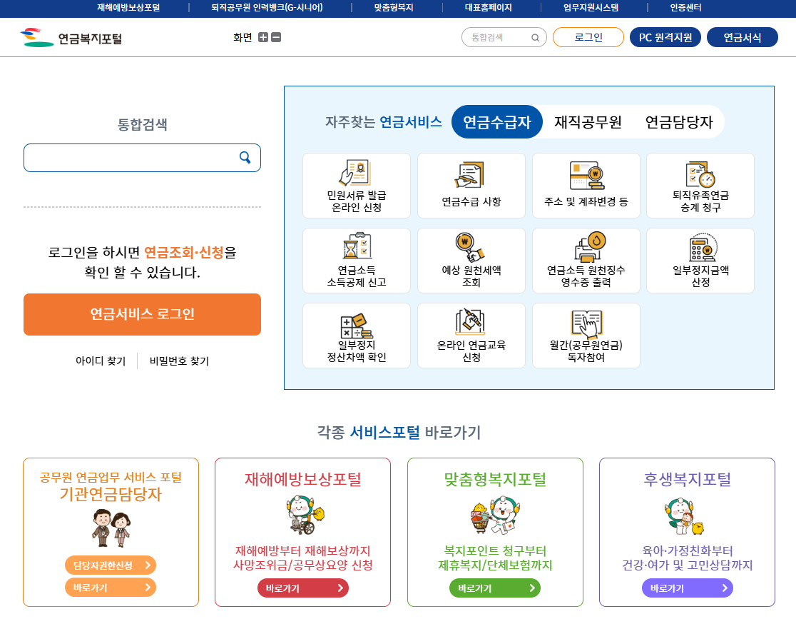 ↓ 공무원연금공단 연금복지포털