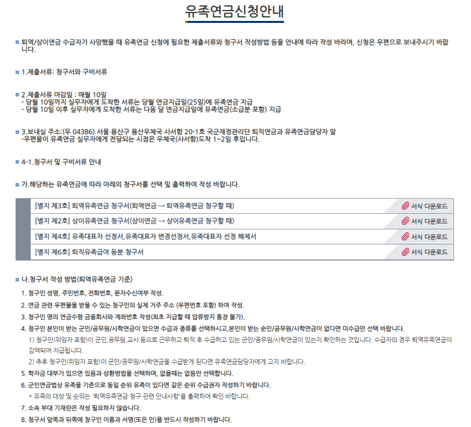 ↓군인연금 유족연금신청 안내-서식다운로