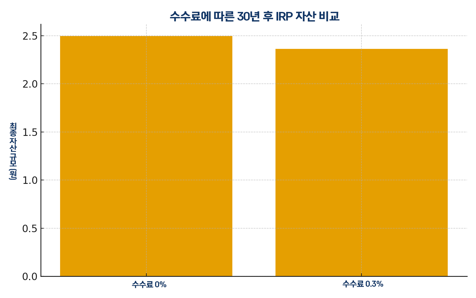 IRP는 10년 이상 장기 운용되므로 연 0.01%의 수수료 차이도 수천만 원의 차이를 발생시킵니다.