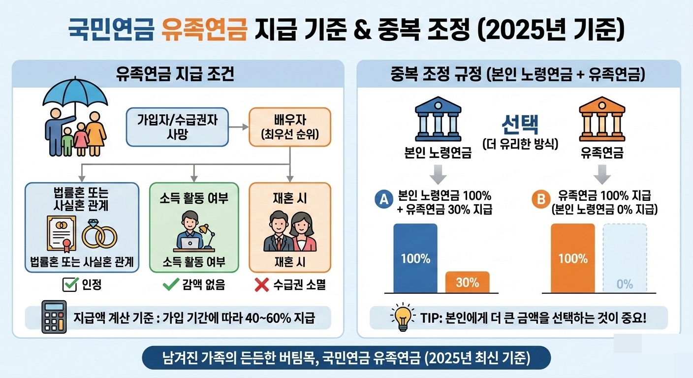 국민연금 배우자 사망 시 지급 기준 유족연금 조건 및 중복 조정 완벽 정리 (2026년 기준)
