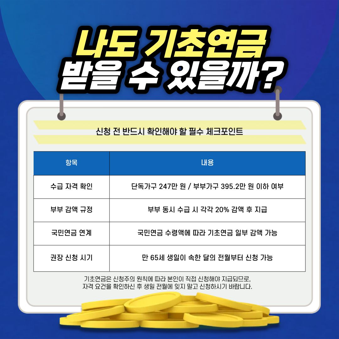 소득 하위 70%에 속하면서 부부 감액이나 국민연금 연계 감액에 해당하지 않는다면, 이 금액은 어르신들의 통장에 고스란히 입금되어 식비, 의료비 등 필수 생활비로 활용될 것입니다.