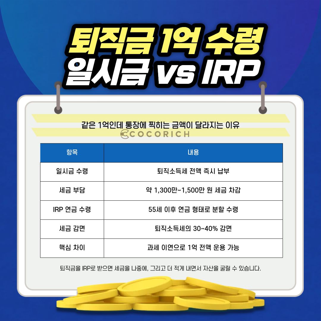 퇴직금 1억, 일시금과 IRP 수령의 차이