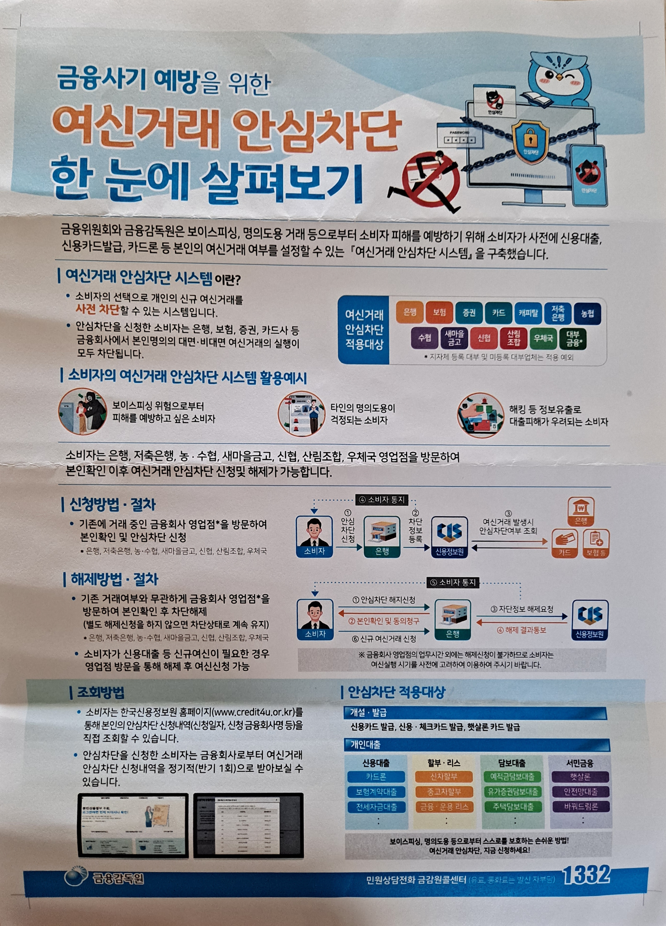 금융사기 우려가 계속된다면 다시 차단해두는 것이 좋습니다.