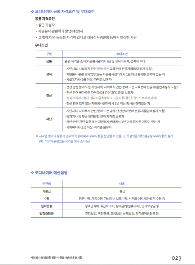 급여와 복지 혜택은 자원봉사센터의 운영주체(지자체 또는 민간위탁) 및 해당 지자체의 재정 상황에 따라 일부 차이가 발생할 수 있습니다.