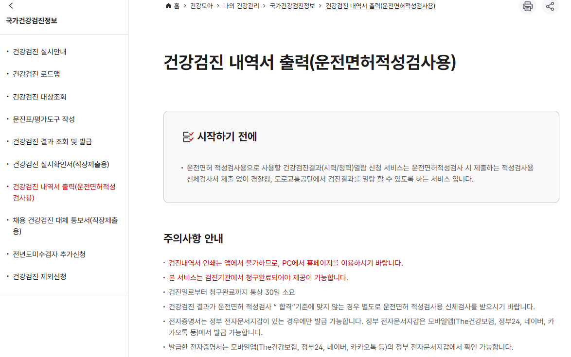 이 경우 건강검진 결과 출력물도 필요하지 않습니다.