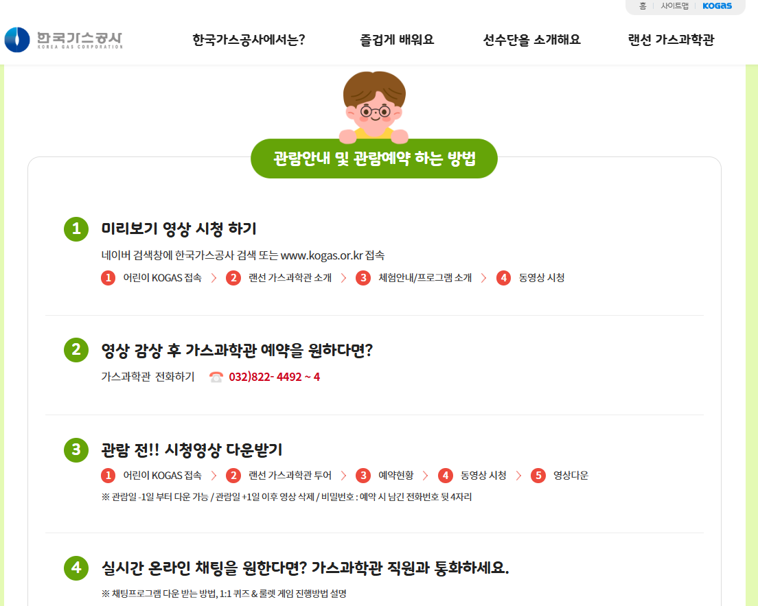 가스과학관 역시 예약제로 운영되고 있어 미리 날짜와 시간대를 정해두면 여유롭게 관람할 수 있어요.