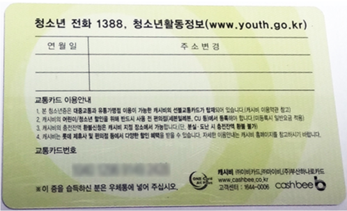 청소년증에는 교통카드 기능과 편의점 선불카드 기능이 탑재된 종류도 있어 활용도가 높습니다.